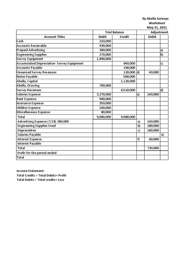 What is a worksheet in accounting. › accounting-basicsClosing Entries: Step by Step Guide - Accountingverse Temporary, or nominal accounts, are measured periodically. And so, the amounts in one accounting period should be closed so that they won't get mixed with those in the next period. Income and expenses are closed to a temporary clearing account, usually Income Summary. Then, Income Summary is closed to the capital account. › rental-income-andRental Income and Expense Worksheet - PropertyManagement.com Once entered, the worksheet will calculate the totals for you, so you can see your gross income, net income, and total yearly expenses refresh every time you make a change. The best part? It’s all customizable – create and delete categories and otherwise adjust as needed to fit your unique situation. › accounting-worksheetAccounting Worksheet | Format | Example | Explanation An accounting worksheet is a tool used to help bookkeepers and accountants complete the accounting cycle and prepare year-end reports like unadjusted trial balances, adjusting journal entries, adjusted trial balances, and financial statements. en.wikipedia.org › wiki › WorksheetWorksheet - Wikipedia A worksheet, in the word's original meaning, is a sheet of paper on which one performs work. They come in many forms, most commonly associated with children's school work assignments, tax forms, and accounting or other business environments.