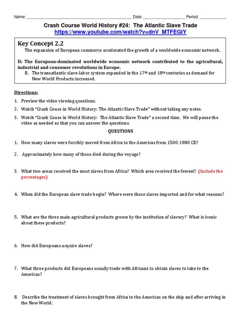 The atlantic slave trade worksheet answers