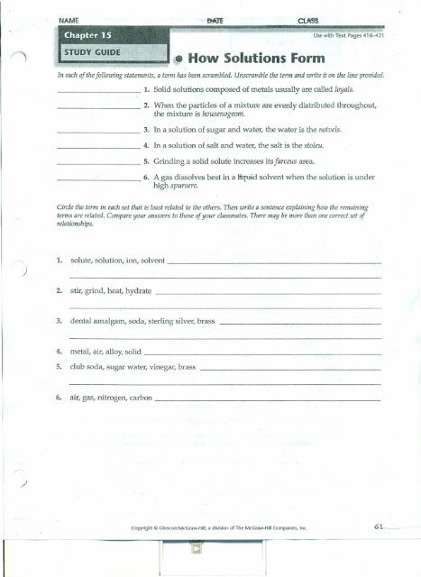 Solute and solvent worksheet. study.com › skill › learnHow to Calculate the Concentration of a Solute in Grams per ... Solute: A solute is the substance dissolved in a solution. Solvent: ... Quiz & Worksheet - Skiff in The Old Man and the Sea Quiz & Worksheet - Stargirl Characters Analysis ... › RiginoMacunayJr › science-6-k12Science 6 K-12 Teacher s Guide (1st quarter) - SlideShare Jul 03, 2017 · Drill: Reading of Science terms in flashcards/in screen like solubility, solute, solvent , stirring, grinding, miscibility, particles, nature of solute, nature of solvent, temperature 2. Review: Classify materials as solute and solvent. thefactfactor.com › facts › pure_scienceNumerical Problems on Percentage by Mass - The Fact Factor Jan 29, 2020 · A solution is prepared by dissolving a certain amount of solute in 500 g of water. The percentage by mass of a solute in a solution is 2.38. Calculate the mass of solute. Given: Mass of solvent = 500 g, percentage by mass = 2.38. To Find: Mass of solute =? Solution: Let the mass of solute = x g successessays.comSuccess Essays - Assisting students with assignments online Each paper writer passes a series of grammar and vocabulary tests before joining our team.