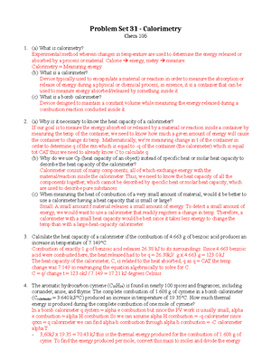Calorimetry Quiz : ChemQuiz.net This online quiz is intended to give you extra practice in calorimetry problems (q = c⋅m⋅ΔT) with options for different units of heat and temperature. Select your preferences below and click 'Start' to give it a try! DOC Calorimetry Problems 1 Chemistry: Calorimetry Problems 1. Solve the following problems. As always, include work and show the units to ensure full credit. 1. A 445 g sample of ice at -58oC is heated until its temperature reaches -29oC. Find the change in heat content of the system. 2. A 152 g sample of ice at -37oC is heated until it turns into liquid water at 0oC.