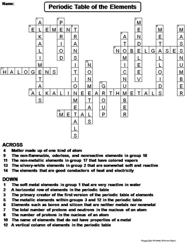Periodic Table Crossword Puzzles