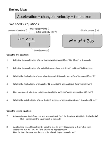 Velocity and acceleration calculation worksheet