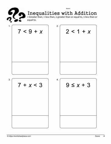 Solving Inequalities Worksheet Teaching Resources | TpT This is a set of 4 solving one-step inequalities worksheets. Worksheet 1: Solving by addition or subtraction. Students will match their solution with the correct solutions graph.Worksheet 2: Color Sheet. By all operations, solving only.Worksheet 3: Riddle. By all operations, solving only.Worksheet 3: Cut and Paste.