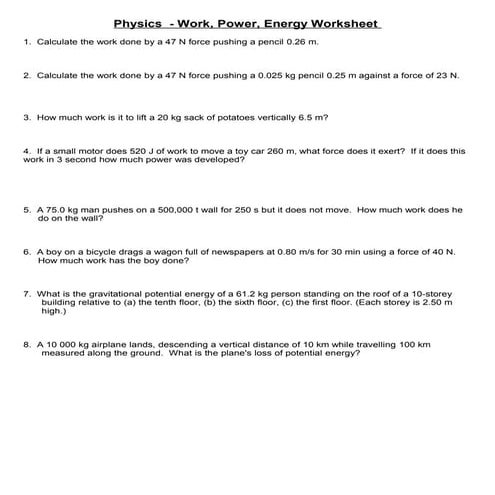 Work energy and power worksheet answers physics classroom. Home : Occupational Outlook Handbook: : U.S. Bureau of Labor ... Sep 08, 2022 · Members of the U.S. military service train for and perform a variety of tasks in order to maintain the U.S. national defense. Servicemembers work in occupations specific to the military, such as fighter pilots or infantrymen. Many other members work in occupations that are equivalent to civilian occupations, such as nurses, doctors, and lawyers. Light and Color Review - Answers #2 - Physics Classroom Work, Energy, and Power; Circular Motion and Gravitation; Static Electricity; Electric Circuits; Vibrations and Waves; Light and Color; Reflection and Mirrors; Refraction and Lenses; Multimedia Studios. 1-Dimensional Kinematics; Newton's Laws; Vectors and Projectiles; Momentum and Collisions; Work and Energy; Circular, Satellite, and Rotational ... Power - Physics Classroom Power is the rate at which work is done. It is the work/time ratio. Mathematically, it is computed using the following equation. Power = Work / time or P = W / t . The standard metric unit of power is the Watt. As is implied by the equation for power, a unit of power is equivalent to a unit of work divided by a unit of time. Physics Tutorial: Combination Circuits - Physics Classroom Work, Energy, and Power; Circular Motion and Gravitation; Static Electricity; Electric Circuits; Light and Color; Vibrations and Waves; Reflection and Mirrors; Refraction and Lenses; Multimedia Studios. 1-Dimensional Kinematics; Newton's Laws; Vectors and Projectiles; Momentum and Collisions; Work and Energy; Circular, Satellite, and Rotational ...