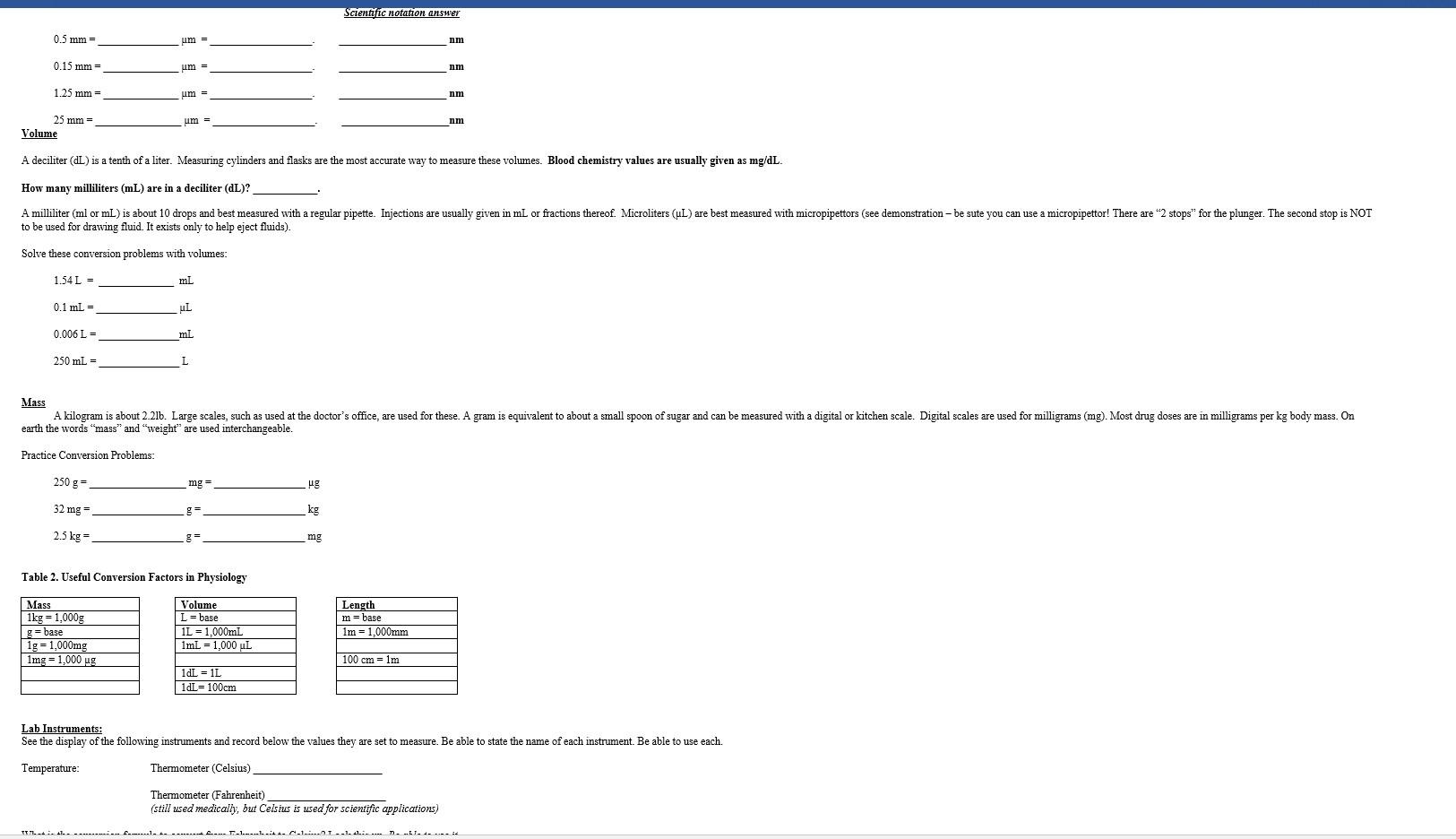 Metric System Review Worksheet.docx - BIO101L FALL 2020... View Metric System Review Worksheet.docx from CHE 101 at Quinnipiac University. BIO101L FALL 2020 METRIC SYSTEM REVIEW WORKSHEET: Study the table below, which shows the relationship between the