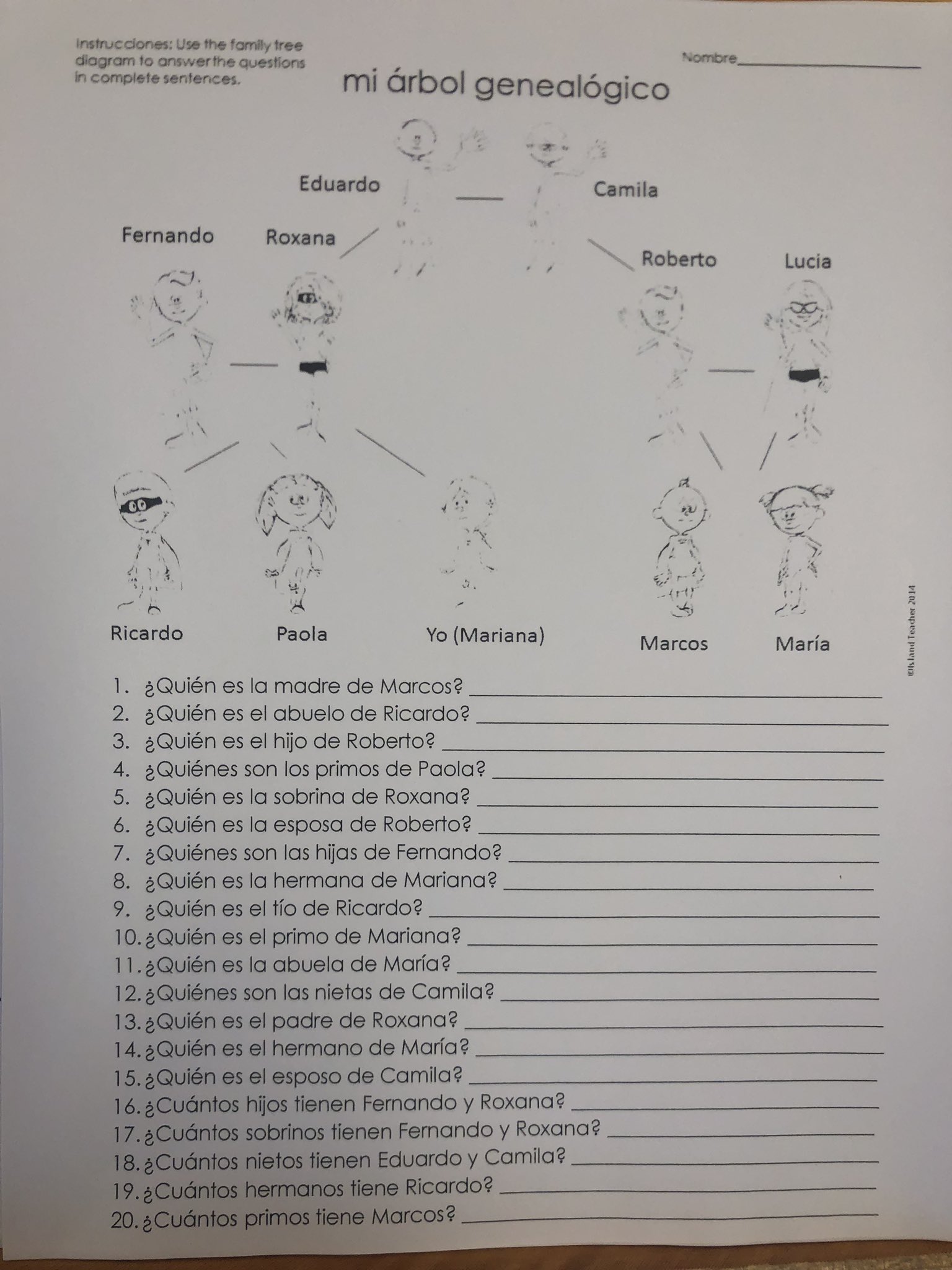 La Familia Spanish Family Tree Questions Worksheet - Pinterest Oct 22, 2019 - In this activity, students will practice answering questions in Spanish using a diagram of a family tree. The activity includes 20 questions.