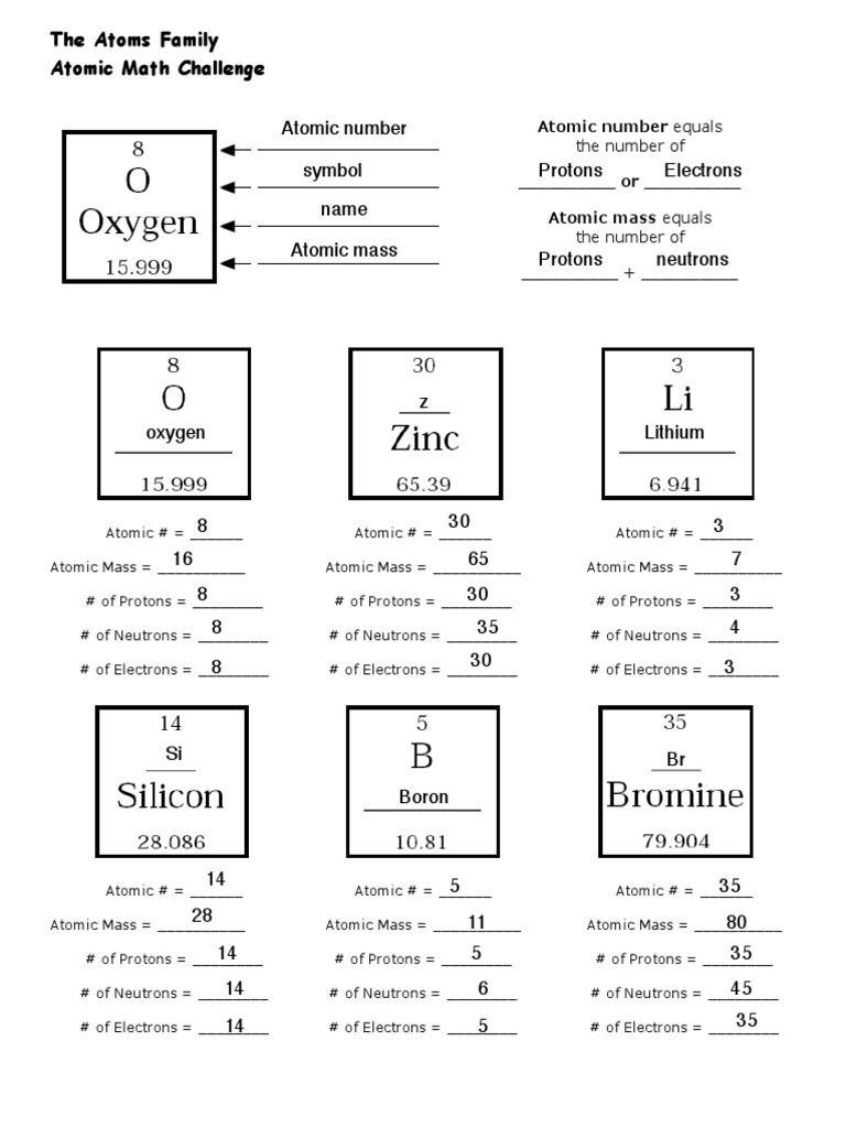 Atomic math worksheet answers. Free PDF Chemistry Worksheets To Download or Print - ThoughtCo Web30.05.2019 · Color Printable Periodic Table - Pretty much everything you need that can fit on a page and still be readable. Color table with atomic numbers, element symbols, element names, atomic weights, periods, and groups. [2013 Edition] [2012 Edition]Black/white Printable Periodic Table - Black/white table with atomic numbers, element symbols, … Build an Atom - Atoms | Atomic Structure | Isotope Symbols WebBuild an atom out of protons, neutrons, and electrons, and see how the element, charge, and mass change. Then play a game to test your ideas! HyperPhysics - GSU WebThe rationale for such concept maps is to provide a visual survey of conceptually connected material, and it is hoped that they will provide some answers to the question "where do I go from here?". Whether you need further explanation of concepts which underly the current card content, or are seeking applications which go beyond it, the concept map may help … States of Matter - Atomic Bonding | Interaction Potential ... Watch different types of molecules form a solid, liquid, or gas. Add or remove heat and watch the phase change. Change the temperature or volume of a container and see a pressure-temperature diagram respond in real time. Relate the interaction potential to the forces between molecules.