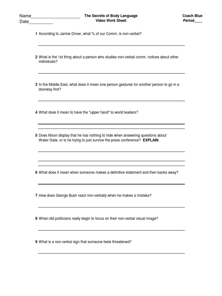 The secrets of body language video worksheet answers