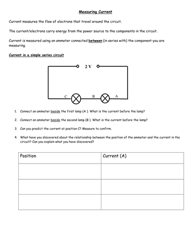 Current voltage and resistance worksheet. Current, voltage, resistance worksheet|KS3 Physics|Teachit This electricity resource asks KS3 students to sort statements relating to current voltage and resistance into the correct groups. When their answers have been checked they create a mindmap with the information. Each student then uses their map to describe the three terms to their partner. The challenge then is to recreate the mindmap. Current-voltage Characteristics Worksheets, Questions and Revision This law only applies if the conductor is kept at a constant temperature as changes in temperature affects resistance. This law can be represented in the equation: V=IR V = I R V= V = potential difference in volts \text { (V)} (V) I= I = current in amperes \text { (A)} (A) R= R = resistance in ohms (\Omega) (Ω) FREE! - Current, Resistance, Potential Difference Worksheet - Twinkl This Current, Resistance and Potential Difference Worksheet is aimed at GCSE science students letting them practise using the equation potential difference = current × resistance. It includes opportunities to convert units and rearrange the equation, including low, standard and high demand question parts. Includes an extended response question on determining the resistance of a circuit ... Ohm's Law - How Voltage, Current, and Resistance Relate Voltage is measured in volts, symbolized by the letters "E" or "V". Current is measured in amps, symbolized by the letter "I". Resistance is measured in ohms, symbolized by the letter "R". Ohm's Law: E = IR ; I = E/R ; R = E/I RELATED WORKSHEETS: Ohm's Law Worksheet Ohm's Law Practice Worksheet With Answers