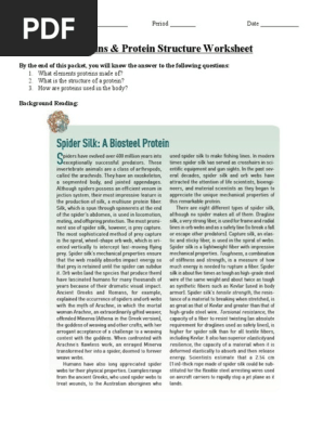 Protein structure worksheet answers. Proteins & Protein Structure Worksheet worksheet Proteins & Protein Structure Worksheet ID: 2597045 Language: English School subject: Biology Grade/level: adults Age: 18+ Main content: Proteins & Protein Structure Worksheet Other contents: Proteins & Protein Structure Worksheet Add to my workbooks (2) Download file pdf Embed in my website or blog Add to Google Classroom Add to Microsoft Teams locustware.comDIY Seo Software - Locustware.com DIY Seo Software From Locustware Is Exactly What You Need! Looking To Improve Your Website's Search Engine Optimization? No more guesswork - Rank On Demand Understanding Protein Structure Atoms to Ecosystems Part 1 View Homework Help - Protein-Structure-Worksheet from CHEM CHEM 101 at Cambridge. Name: _ Understanding Protein Structure Atoms to Ecosystems Part 1: ... Protein Structure Worksheet Answer Key - myilibrary.org Protein Structure Worksheets - K12 Workbook *Click on Open button to open and print to worksheet. 1. Chapter 7 Molecular Genetics: From DNA to Proteins Worksheets Reload Open Download 2. Protein Structure Analysis: Introducing Students to ... Reload Open Download 3. MY FAVORITE PROTEIN Activity Reload Open Download 4.