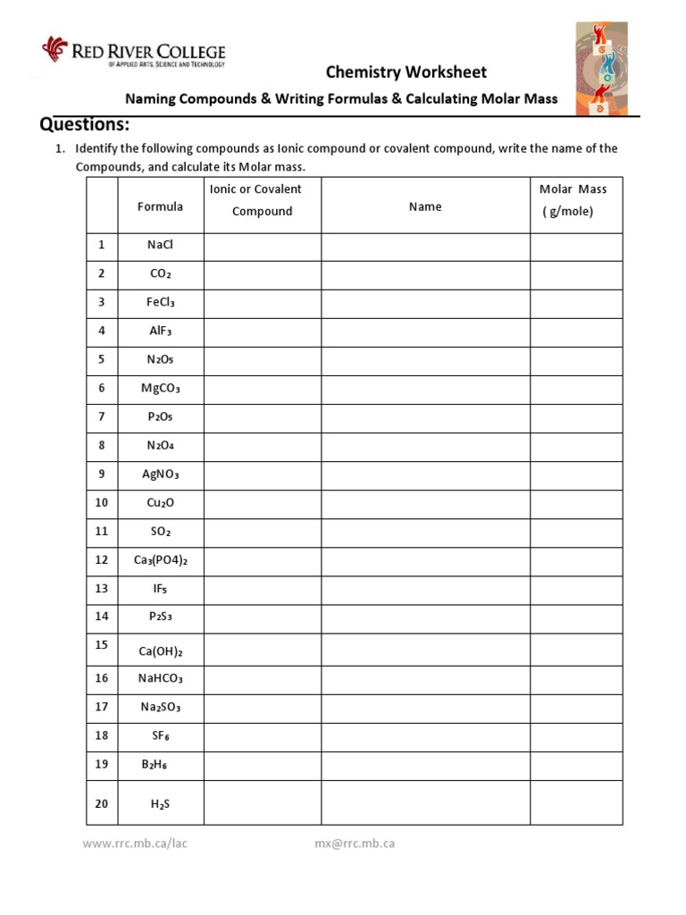 Calculating molar mass worksheet with answers