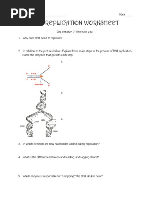 Solved DNA REPLICATION WORKSHEET Use chapter 17-2 to help ...