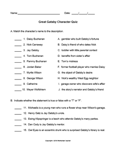 The great gatsby character worksheet answer key