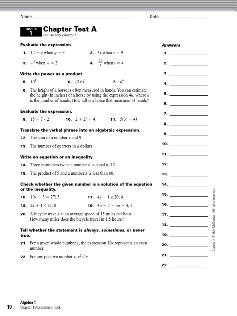 Holt McDougal Mathematics Course 2 answers & resources - Lumos Learning Holt McDougal Mathematics Course 2 answers & resources | Lumos Learning Holt McDougal Mathematics Course 2, Grade: 7 Publisher: Holt McDougal import_contacts Holt McDougal Mathematics Course 2 Title : Holt McDougal Mathematics Course 2 Publisher : Holt McDougal Grade : 7 ISBN : 30994292 ISBN-13 : 9780030994296 collections_bookmark Holt Mcdougal Algebra 1 Teaching Resources | Teachers Pay Teachers Holt McDougal Algebra 1 Sections 1.6 - 1.8 Notes and Classwork Packet. by. Lensie Means. $2.95. Word Document File. This is an editable notes with homework handout that I use for my Algebra A kids. I've taken the notes problems from the text book provided examples and the homework problems from the resources provided by the text.