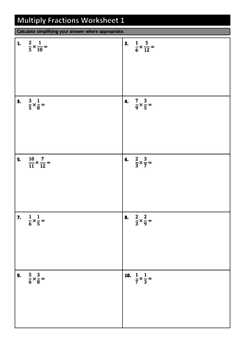 Multiplying Fractions Super Teacher Worksheets Answer Key This worksheet has an explanation box to show students how to multiply fractions, followed by 11 practice problems. 5th and 6th Grades View PDF Word Problems: Multiplying Fractions Multiply fractions to solve each word problem. Make sure to simplify if possible, and show your work. 4th through 6th Grades View PDF Task Cards: Multiplying Fractions