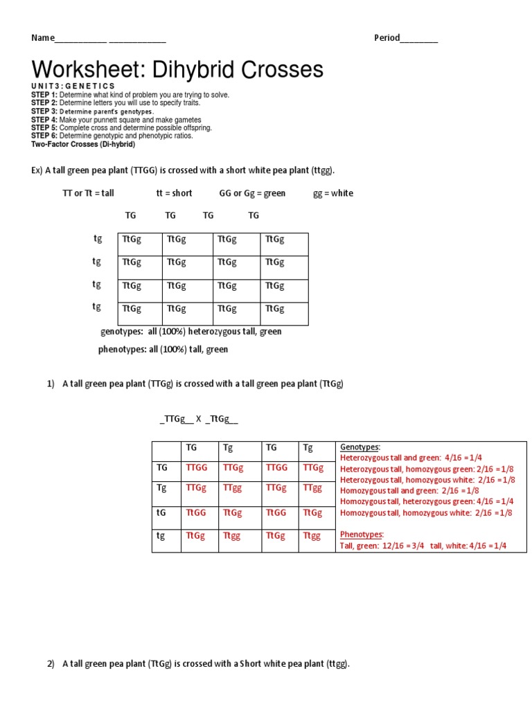 Worksheet dihybrid crosses unit 3 genetics. The Science Spot Genetics Challenge puzzle (pdf) - I use this worksheet to review key terms from our unit on genetics. Genetics Word Search (pdf) - A word search with terms from genetics as well as an added challenge related to scientists who have made contributions to the field of genetics! Challenge Answers: Chargaff, Crick, Watson, Franklin, Mendel, and Wilkins Alien Genetics Answer KeyFor each genotype below, indicate ... Be sure to complete the Punnett square to show how you derived your solution. 27 bikini bottom genetics worksheet answer key. Alien Punnett Squares Teaching Resources. Meet the Aliens Genetics Project. 00 Add to cart New Drop Garlic Sours [10 pack]. Alien Genetics – Cannabis Seed Breeder. Mendelian_Genetics_Dihybrid_. A Beginner's Guide to Punnett Squares - YouTube Paul Andersen introduces the Punnett Square as a a powerful tool in genetic analysis. He tries to address major misconceptions that students have when use a... Trihybrid Cross Genotypic Ratio CalculatorHence, he is known ... Crosses involving three independently assorting character pairs are called trihybrid The expected genotypic ratios for a dihybrid cross is 9:3:3:1, and for a monohybrid cross is 1:2:1 This is a 6-page worksheet of 12 dihybrid, or two factor, genetics practice problems The Punnett square calculator provides you with an answer to that and many.