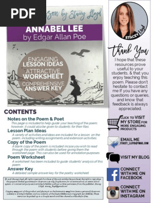 Poetry Analysis Worksheet Teaching Resources Results 1 - 24 of 8100+ ... Browse poetry analysis worksheet resources on Teachers Pay Teachers, ... analysis guidelines, lesson plans, a full answer key, ... Poetic Analysis Worksheets Poetic Analysis Worksheets. Related ELA Standard: RL.6-7. Core Standard. Answer Keys Here. Poems are consonantly being evaluated and analyzed for historical ...