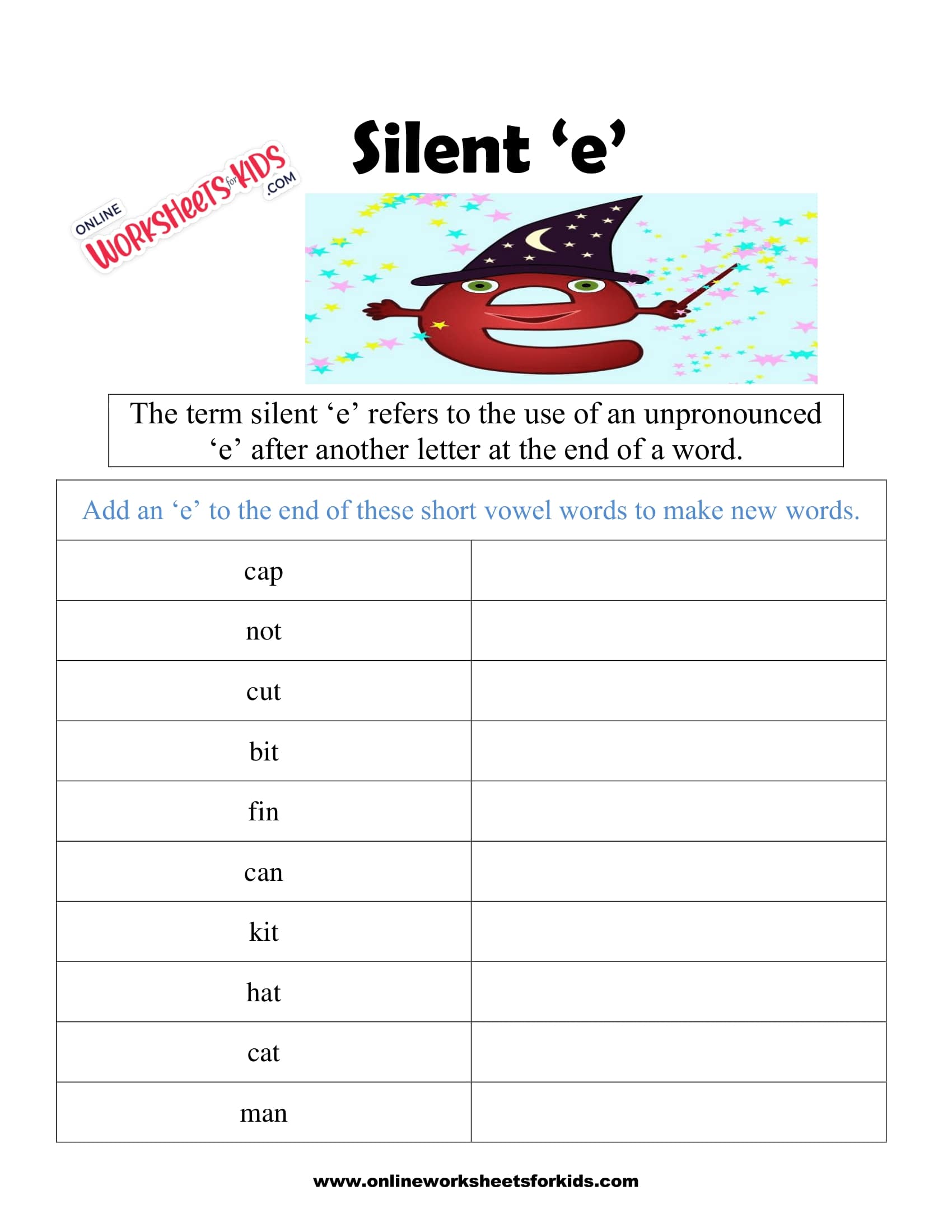 Silent e worksheet free
