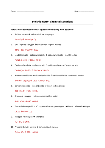49 Balancing Chemical Equations Worksheets [with Answers] - TemplateLab In this chemical equation, a new product is formed by combining two to three combinations of reactants. For instance, H 2 + O 2 H 2 O. This is a chemical equation where two atoms of hydrogen are combined to form a product, water. This is why this reaction is called as synthesis reaction.