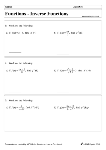 Finding inverses algebraically worksheet