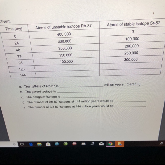 PDF CHM152LL: Nuclear Chemistry Summer Worksheet - gccaz.edu Figure 1 below indicates the parent and daughter nuclei as well as the half-lives for all the radioactive isotopes in the decay series for Uranium-238. Use the information provided in the figure and the first order equations provided above to answer the following questions: Exercise 1: a. What is the half-life for Thorium-230? _____ b. Half life of Radioactive Isotopes - Chemistry Mr. Nguyen... Chemistry Mr. Nguyen Half-Life of Radioactive Isotopes: Answers 1. How much of a 100.0 g sample of Au-198 is left over after 8.10 days if its half-life is 2.70 days? Ans: 12.5 grams Use the formula: final mass = initial mass x (1/2) n, where n = total time / half-life. Half Life Worksheet Answer Key What Is Radioactivity Radioactive Dating Worksheet Answers - EBoard. Radioactive Dating Worksheet Answers 1. 1 When 50% is left it has gone through 1 half-life (1.3 billion years for K-40) 2. 2 All the C-14 will be gone after approx 50, 000 years; the earth is 4.6 billion yrs old. Isotope Practice Worksheet Answers - sgaf.luniversoacolori.it The number 6 refers to the Atomic Number c. Isotope Practice Worksheet Name_____Per____. Isotope practice worksheet answer key isotopes worksheet answers in. worksheet atomic structure answers isotopes answer key ions chemistry table periodic unit worksheets isotope practice puzzle packet particles subatomic atoms.
