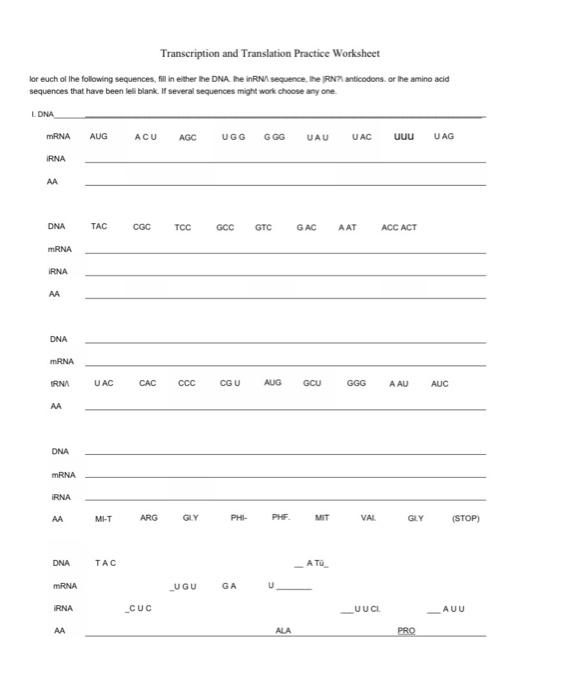 Declaration of Independence: Projects - US History Each of the projects is designed to allow you to demonstrate your skills and abilities with respect to what you have learned in this lesson. We offer you many choices so that you can find the one(s) that you find most interesting or relevant. Transcription and Translation | Basic Biology Aug 31, 2020 · Transcription uses a strand of DNA as a template to build a molecule called RNA. The RNA molecule is the link between DNA and the production of proteins. During translation, the RNA molecule created in the transcription process delivers information from the DNA to the protein-building machines. DNA → RNA → Protein Mohs scale of mineral hardness Quiz - PurposeGames.com Web22. Feb. 2022 · This online quiz is called Mohs scale of mineral hardness. It was created by member Medellin and has 10 questions. It is currently featured in 15 tournaments. Worksheet translation transcription translations geometry ks2 ... Transcription and translation worksheet answer key biology with worksheets 48 re mendations protein synthesis worksheet answers. Transcription and translation worksheet answer key biology 1.rar sat apr 12, 2014 4:24 am.Write a rule to describe each translation. ... Printable Math Worksheets @ . Name : Translation of ...